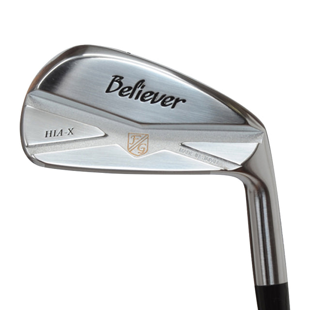 The Believer HIA-X broke the preconception that muscle back irons are generally more difficult to hit; with it’s one piece semi hollow muscle back iron head. 40g of the weight is removed from the club then redistributed to promote a quality feel on impact. Although HIA-X is a muscle back, it matches the trajectory and sweet spot of that of a cavity back. Fujimoto’s Progressive weight flow system is applied, arranging the weight low for long irons, middle for mid irons, and high for short irons to provide desirable distance, accuracy, and spin control. Unlike 2 piece semi hollow clubs that are widely used in the market nowadays the Believer HIA-X uses a 1 piece semi hollow. The head is made using SS400 steel and offers a muscle back’s own feel on impact as well as cavity back’s advantages.