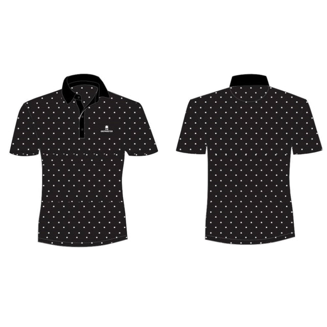 The classic black color pairs perfectly with the TGM Dancing Logo in crisp white, adding a modern touch that reflects both sophistication and fun to your golf wardrobe, making it perfect for both casual rounds and more formal golf events. Whether you're aiming for a birdie or relaxing with friends, this golf polo offers the perfect balance of performance and style. Play with confidence, comfort, and ease, knowing this polo will keep you at your best from the first hole to the 18th.